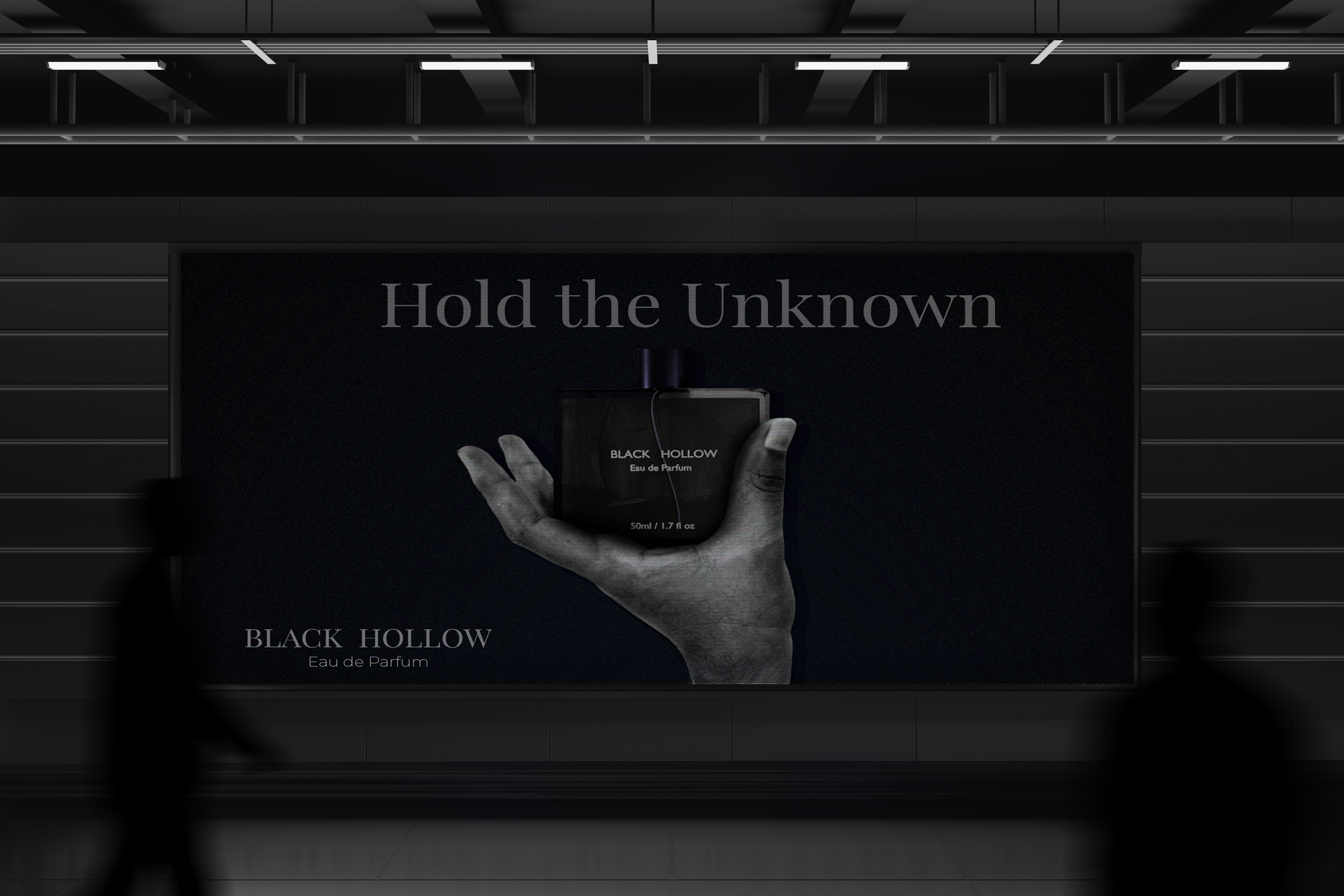 Black Hollow is a concept fragrance brand created to explore the balance between mystery, restraint, and grounded masculinity. The brand is designed for the modern man who values quiet confidence over spectacle. Instead of loud visuals or flashy luxury cues, Black Hollow focuses on depth, texture, and atmosphere to create a presence that feels both refined and raw.
